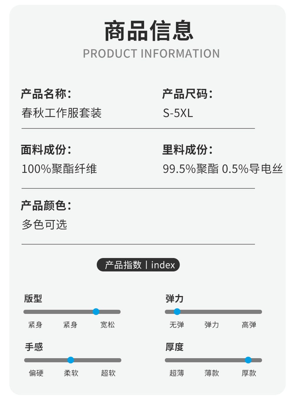 專注工作服制造,品質(zhì)可靠,值得信賴。我們擁有專業(yè)的設(shè)計(jì)團(tuán)隊(duì)和強(qiáng)大的生產(chǎn)能力,能夠滿足不同客戶的個(gè)性化需求??ㄧ陱S家以客戶需求為導(dǎo)向,不斷優(yōu)化產(chǎn)品和服務(wù)。選擇衡通,讓您的團(tuán)隊(duì)更加出色,工作更加順心。